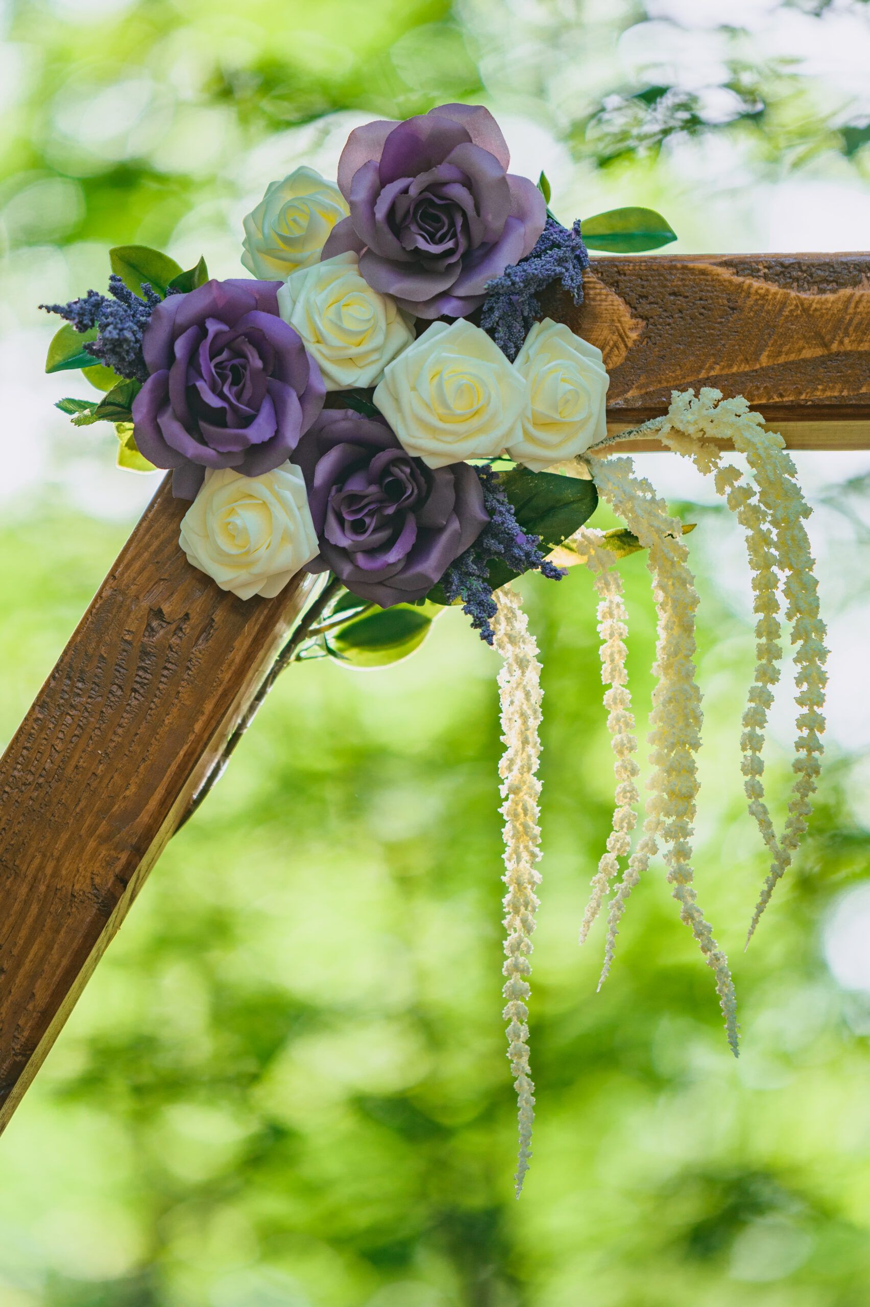 Family and friends can be amazing help when planning a wedding! The top left picture (see above) was of one of the hair pieces that my wonderful friend/bridesmaid made! She made one for myself and each of my three bridesmaids and I still have two of them today. This was such a sweet gift and absolutely beautiful. I used mine during the reception (after the removal of my veil). Another family friend let us borrow some pieces of fabric which were used in our outdoor ceremony. My husband and his father built our backdrop (a wooden hexagon, which was donated to the camp afterwards for other weddings). My sister did our engagement pictures (she’s not a professional, but did an incredible job) and one of my husband’s friends flew up from out of state to do our photography for a fraction of the price that a different professional would’ve cost. We also had family friends do the music for our wedding. We had a violinist, a harpist, and two singers, it was one of the most beautiful ensembles I’ve ever seen in a wedding (and I mean, come on, a harpist!!!).